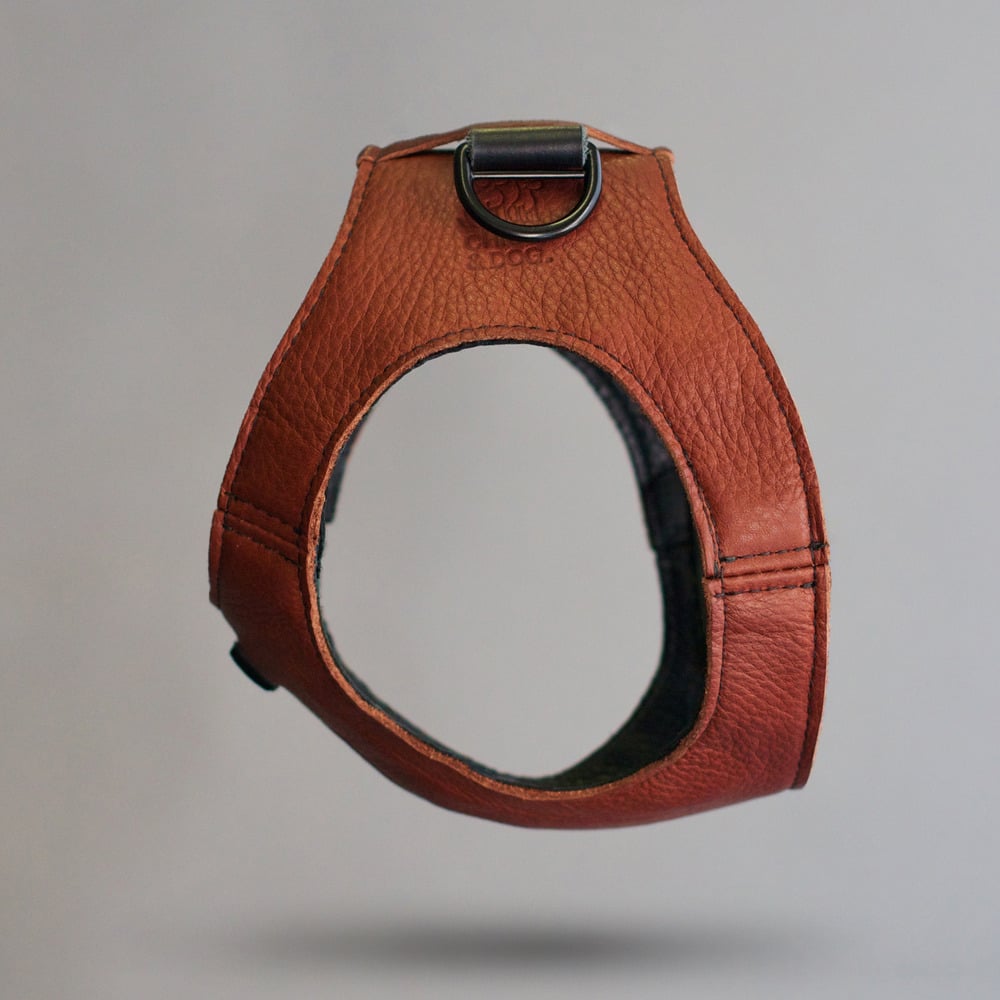 Developed for the urban dog, the Cognac Harness is a great product that looks stylish and provides a comfortable restraint. The innovative design conforms to the shape of the dog, enhancing it's natural beauty.